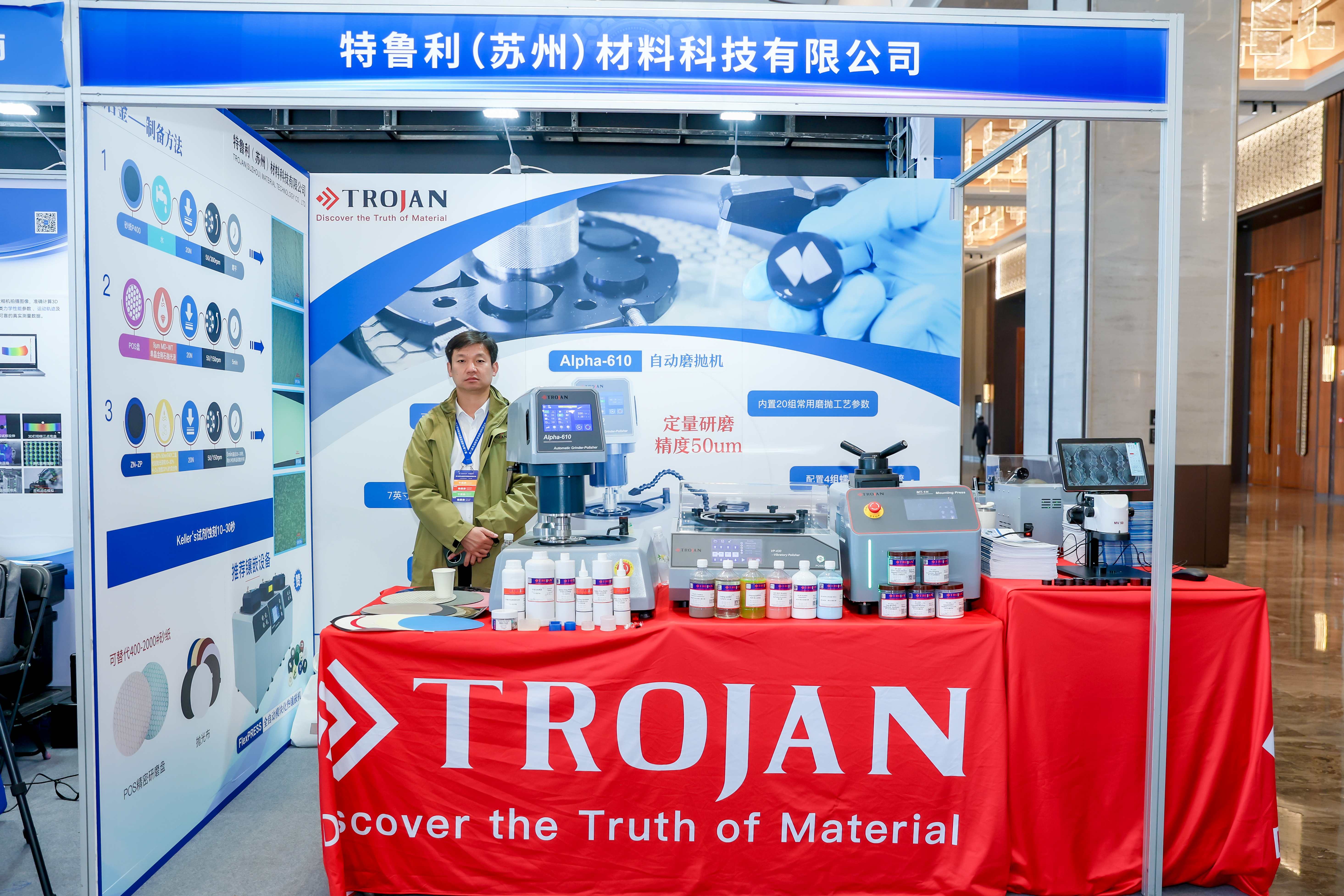 Als uitstekende partner van deze conferentie presenteerde Trojan zijn reeks oplossingen voor het testen van materiaal voor vliegtuigmotoren. Verschillende apparaten, waaronder de Alpha-610 automatische slijp- en polijstmachine , VP-430 vibrerende polijstmachine , en CT-150 Precisiesnijmachine met lage snelheid , trokken veel aandacht vanwege hun uitzonderlijke prestaties.