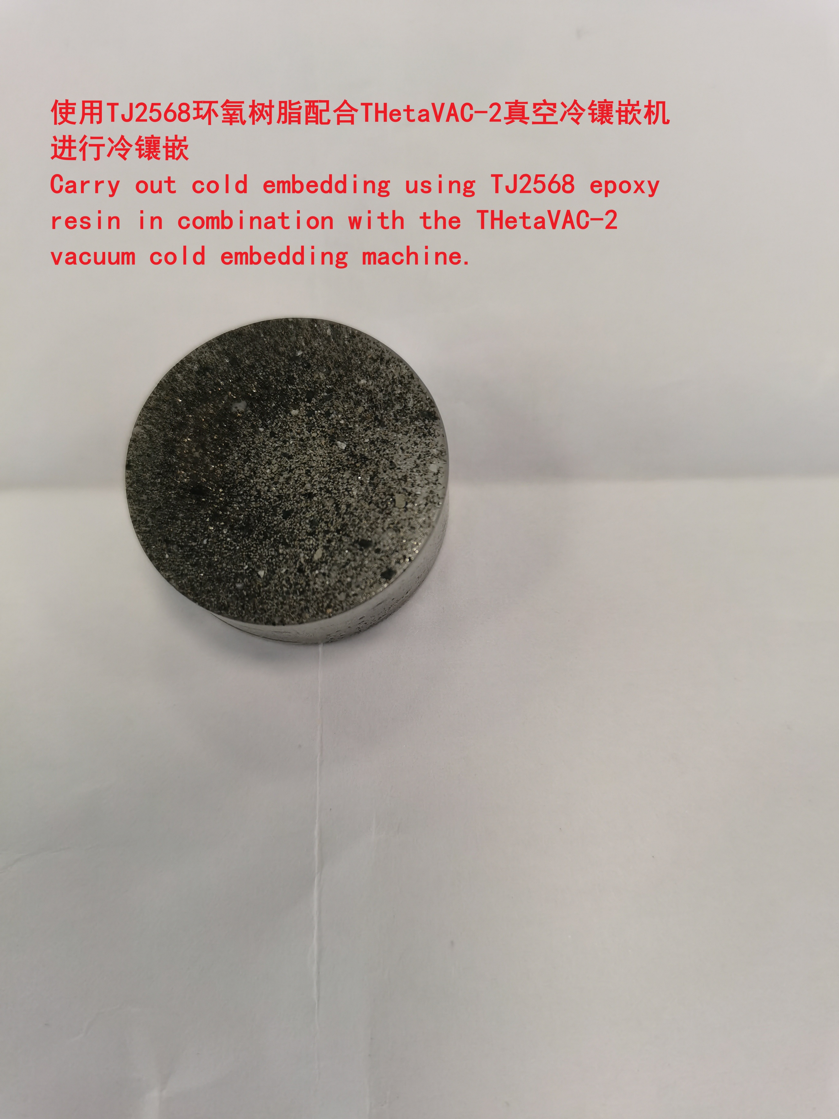 Ten eerste is het ingebed met behulp van koude inbeddingsmateriaal TJ2568 met randbescherming epoxyhars. Vervolgens wordt op de ALPHA610 automatische slijp- en polijstmachine het monster bereid door drie stappen van slijpen en polijsten. De stappen zijn als volgt: