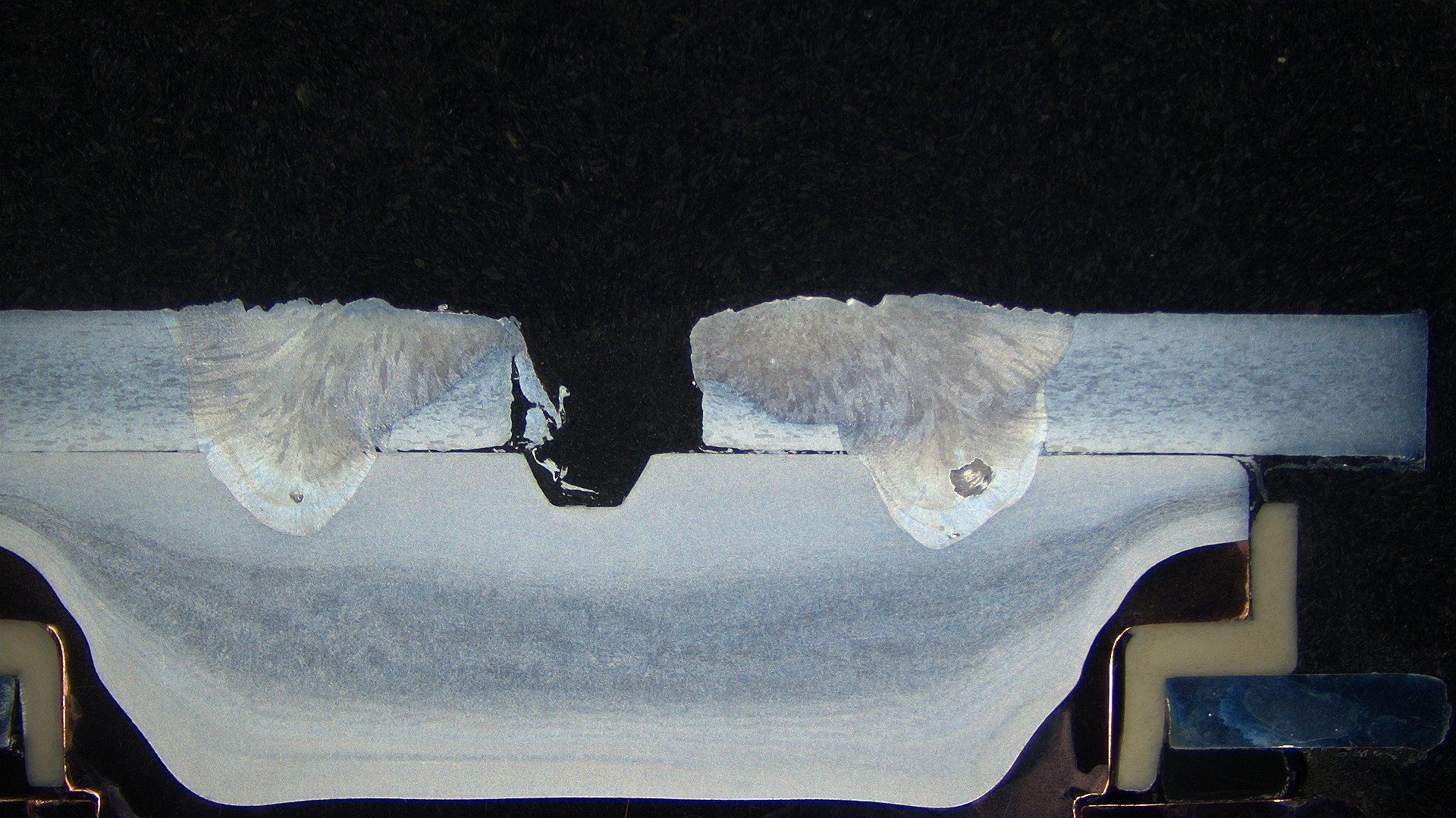 Macro Metallografische monstervoorbereiding Schema voor lasergelaste aluminium rails: