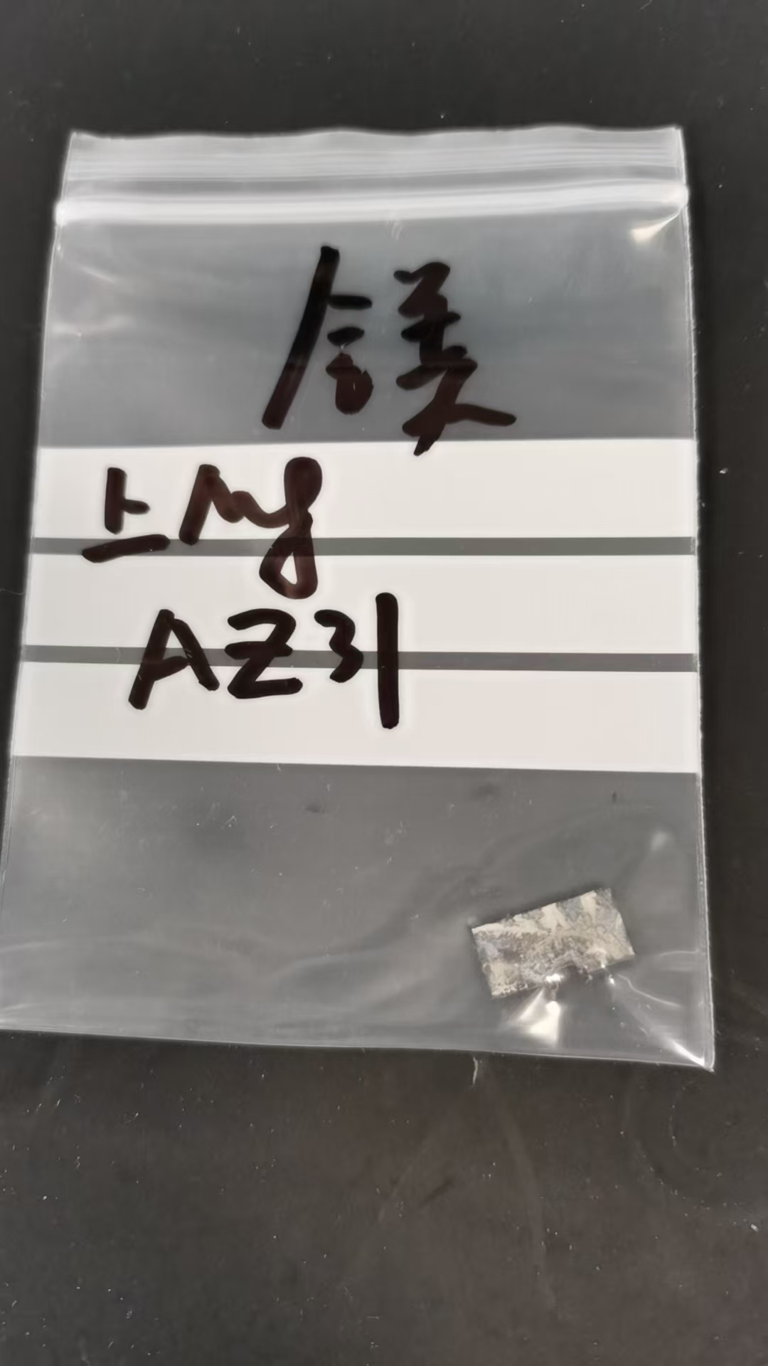 Nu zijn de dunne platen van AZ magnesiumlegering (AL%: 2,5-3,5, Zn%: 0,6-1,4, Mn%: 0,2-1,0 en de resterende Mg) gepolijst en bemonsterd.