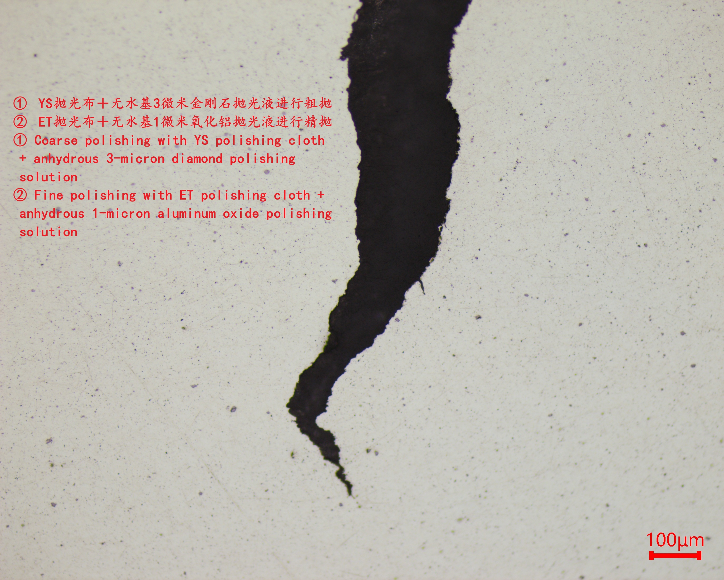 2. Grof polijsten wordt uitgevoerd met behulp van YS-polijstdoek en watervrije 3-micron diamanten polijstophanging.