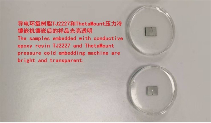 Het monster is in kleine stukjes gesneden en direct ingebed met TJ2227 geleidende epoxyhars en thetamount -druk koude montagemachine voor daaropvolgende SEM -observatie. Vervolgens wordt het monster bereid op de alfa208 dual-control dual-disc slijp- en polijstmachine. De specifieke stappen zijn als volgt:
