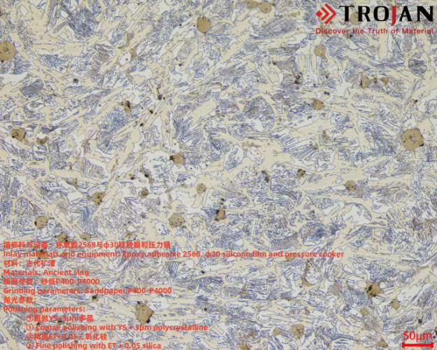 Hier is een waardering voor de monstermonsters en microscopische effecten van gouden fase van archeologische slakmonsters: